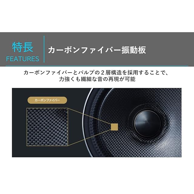 デザイン性と機能性を兼ね備えたカーボンファイバーを振動板に採用。