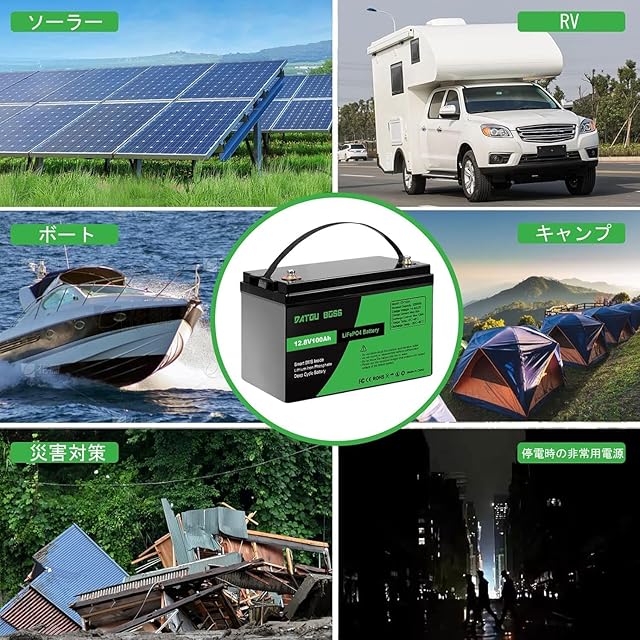 【多用途対応】このバッテリーは、キャンピングカー、車中泊、釣り、ソーラー蓄電、防災グッズ、サブバッテリーとして最適です。高いエネルギー密度と軽量設計により、持ち運びやすく、様々なアウトドア活動や緊急時の電源として活躍します。