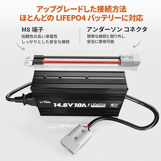 LiTime 14.6V10A リン酸鉄リチウムイオンバッテリー充電器 アンダーソンコネクタ付き LEDインジケータ付き 4つの安全保護 0V充電機能対応 LiFePO4バッテリー充電器 12Vバッテリー適用 12.8Vリチウムバッテリー適用 PSE認証取済 日本語取説付き