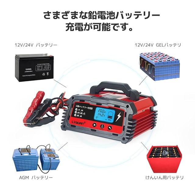⚡【製品仕様】入力電圧:100V 出力電流:20A 12V/24V対応可能 適合バッテリー:(開放型・密閉型・AGM)鉛バッテリー 適合バッテリー容量:20Ah~200Ah