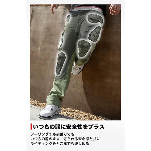 ハードプラスチックガードを尾骨・大腿部に配置し、膝にはCE規格のプロテクターを配置したプロフェッショナルモデルです。