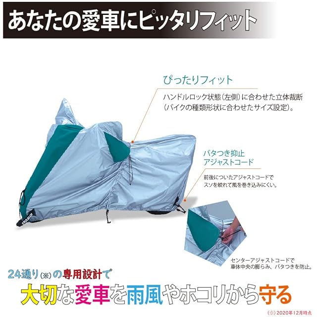 【立体裁断は細かい傷から守ります】立体裁断はでバイクにぴったりフィットすることで、風や砂ぼこりの侵入を防ぎ、バイクを細かい傷から守ります。