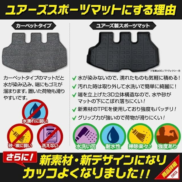 YOURS(ユアーズ): ノア ヴォクシー 90系 専用 3D スポーツマット【2列目用】 NOAH VOXY セカンドマット 2列目マット フロアマット 防水 ゴミ 汚れ 掃除 キズ 防止 カバー保護 y608-045 [2] S