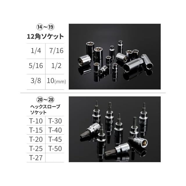 基本的に必要なサイズをそろえた、メンテナンス入門工具セット。52ピース