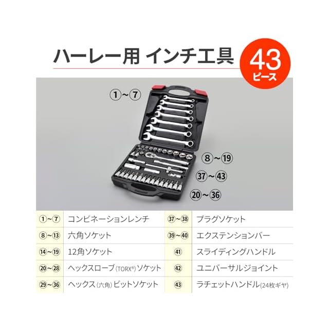デイトナ(Daytona) バイク用 工具 ハーレーダビッドソン用 インチツールセット 43ピース 90408