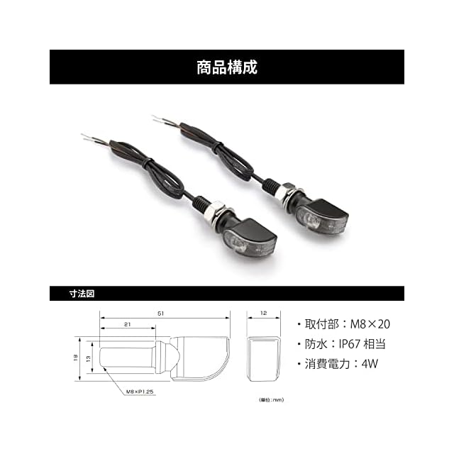 取り付け部:M8×24mm / 直流12Vの二輪車専用品(12V 4W)