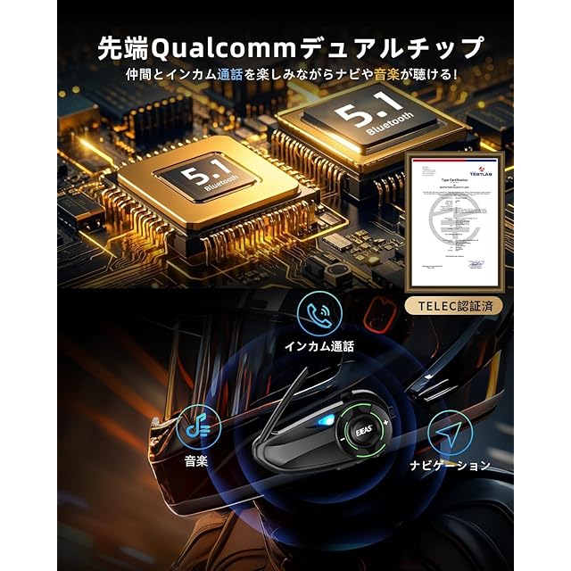 【多重ノイズキャンセル × HIFI高音質】革新のCVC 8.0+DSPデュアルノイズキャンセリングにより、時速180kmの風切り音やエンジン騒音を90%以上カット。相手の声も音楽も、雑音ゼロのクリアサウンドで伝達。AAC/SBCコーデック対応の40mm大型ドライバーが、迫力のある低音から滑らかな中高音までバランス良いサウンドを再現、よりステレオの高音質を実現し、今までにない音質体験を与えます。Qualcommデュアルチップ搭載で、音楽再生・通話・ナビ音声を並列処理。