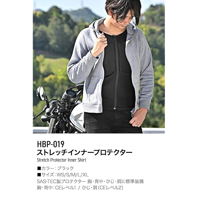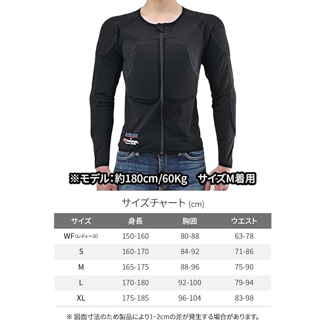 付属プロテクター:SAS-TEC製トリプルフレックス:胸(CEレベル1)、肩(CEレベル1)、ひじ(CEレベル1)、背中(CEレベル1)