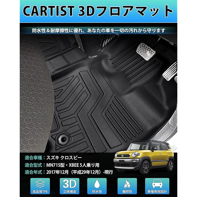Cartist スズキ XBEE クロスビー MN71S型 フロアマット 立体カーマット 車用 3Dフロアマット セカンドマット 立体構造 Xbee 5人2017年12月~ 車種専用設計 防水 滑り防止 耐汚れ TPE素材 カスタムパーツ 取付簡単 保護パーツ カー用品 4PCSセット