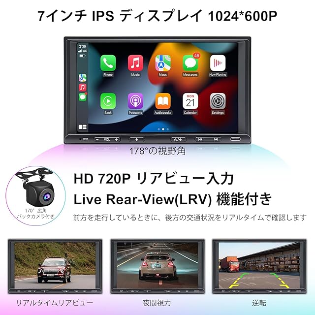 【HDライブリアビュー】カーナビ 7インチ 2din カーオーディオ CarPlayはフロントやリアカメラをライブビューをサポートしています。ライブリアビュー機能は、車が前進しているときでもリアビューにアクセスでき、毎日の運転をより安全にします。カーステレオ ディスプレイ オーディオ 7インチ カープレイはAHD 170°超広視野角のリアビューカメラ搭載、完璧な防水機能とHDナイトビジョン設計、HD 1080Pビデオ品質を持って、より安全で簡単な駐車をサポートします
