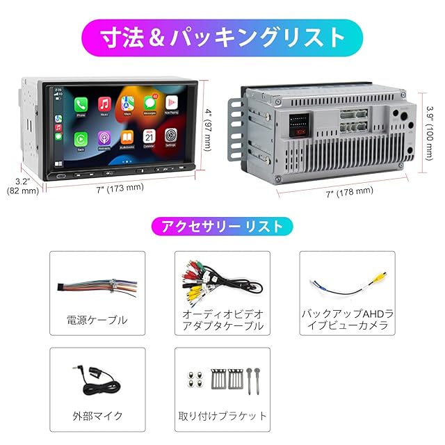 【豊富な機能とプロのアフターサービス】カーディスプレイオーディオ 7インチ 2din カーナビには追加機能があります: USB/AUX入力、AM/FMラジオ、オーディオ/ビデオ出力、7色LED、ステアリングホイール制御、フロント&バックアップカメラビデオ入力、動画、音楽、写真などを高精細解像度で再生可能、動作電圧: DC 12V、最大出力: 4x50W。CarPlayやAndroid Atuoでスマートフォンと接続し、スマホのナビを更新するだけで最新のナビ機能を常にご利用いただけます。【1年間の】年中無休のオンライン技術サポートいたしますので何か不明点がある場合はオンラインカスタマーサービスにお問い合わせください。ご連絡方法:注文履歴>販売元>質問する