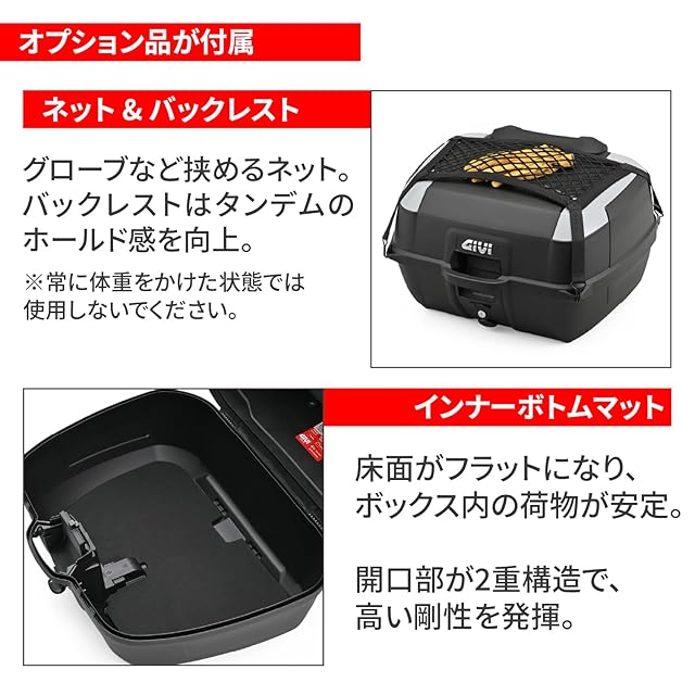 [ジビ] バイク リアボックス モノロック 45L オプション付き(インナーボトムマット/バックレスト/ネットフック) B45+ 43306 ブラック
