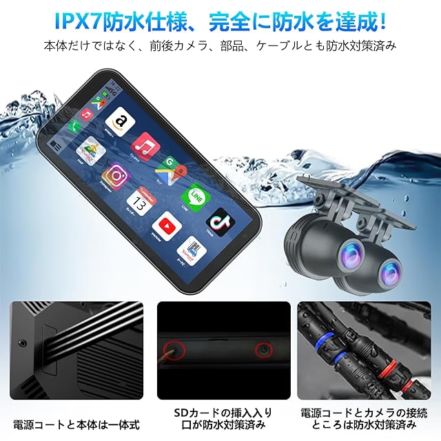 VANBAR バイク ドライブレコーダー Carplay/Android Auto対応 6.25インチタッチ大画面 バイクドラレコ WiFi搭載 スマホ連動 前後カメラ同時録画 自動輝度調整 IPX7防水防塵 エンジン連動 煽り運転防止 通話/音楽再生/ナビゲーション対応 インカム/BTイヤホン対応 三年延長 電話対応 二輪車 オートバイ用 技適取得済み (214-240535)