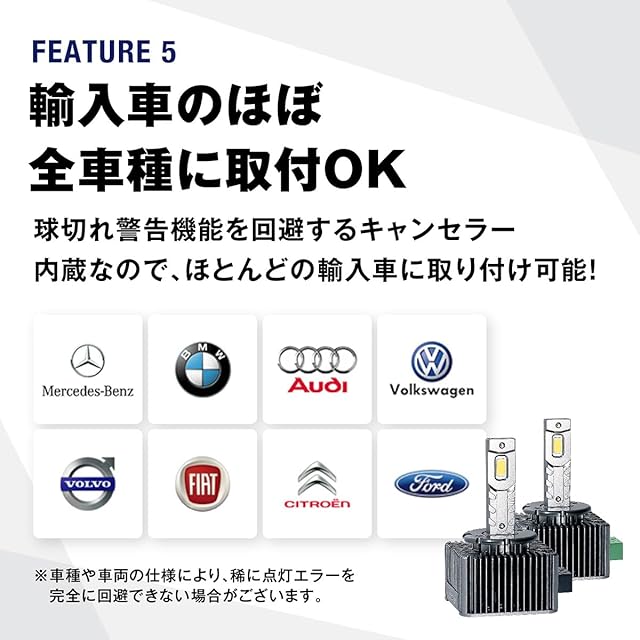 【国産車から輸入車まで幅広く対応】 純正HIDバルブと同等のコンパクト設計で、取付スペースの狭い車種にも対応可能。アルファードやN-BOXなどの国産車から、BMW、ベンツ、アウディといった輸入車まで、ほぼ全車種に取り付けOK。D1S/D3Sタイプはキャンセラー内蔵で、球切れ警告灯の点灯も回避します。