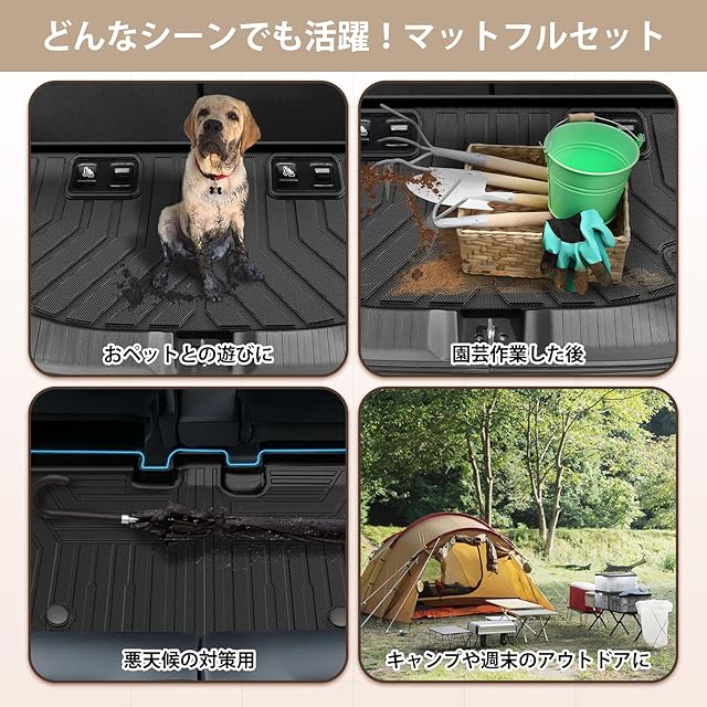 【3Dマット・簡単掃除】:汚れが気にならず、掃除機や水拭きで簡単にお手入れできるので、車内をいつでも清潔に保てます。さらに、従来の絨毯マットとは異なり、弊社のRAIZE/ROCKY防水マットは縁高の3D立体構造を採用しており、泥や水の侵入をしっかり防ぎます。汚れや水滴が気になる方に最適で、日常使いはもちろん、アウトドアシーンや色々なシーンでも活躍するRAIZE/ROCKY立体マットです。