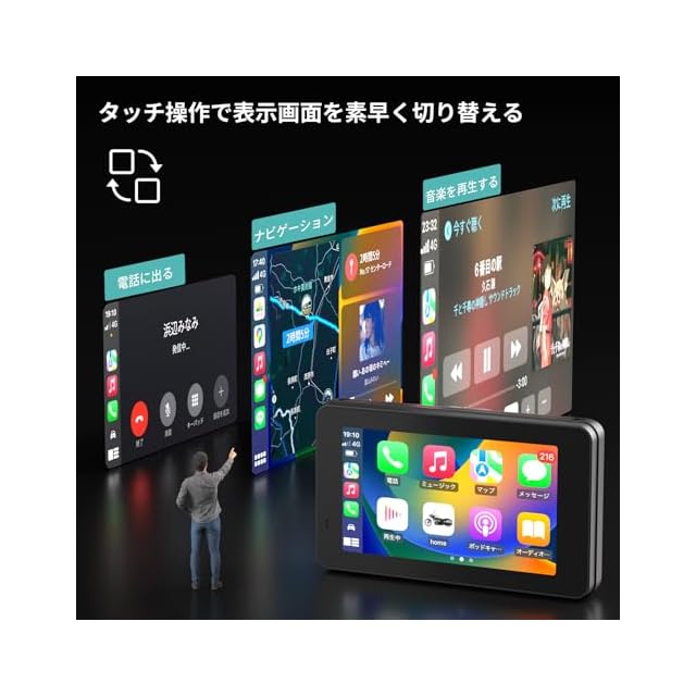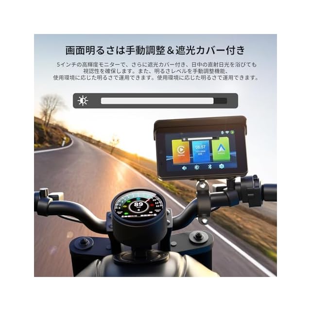 商品名:【最新自転車用とバイク用モニター・Carplay/Android Auto対応 】BOIFUN バイクスマートモニター 5インチ大画面 飛散防止強化IPS液晶タッチスクリーン バイクナビ スマホ連携 ワイヤレス 輝度調整 IPX65防水防塵 耐熱 耐衝撃性 音声アシスタント/音楽再生/通話/ナビゲーション対応 インカム対応 取付ホルダーとusbケーブル付き 日本技適取得済み (前後カメラなし)