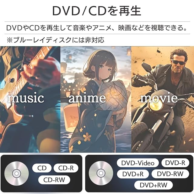 【DVD/CD再生専用モデル】DVDやCDを再生して音楽やアニメ、映画などを視聴することができます。※ブルーレイディスクは再生できません。