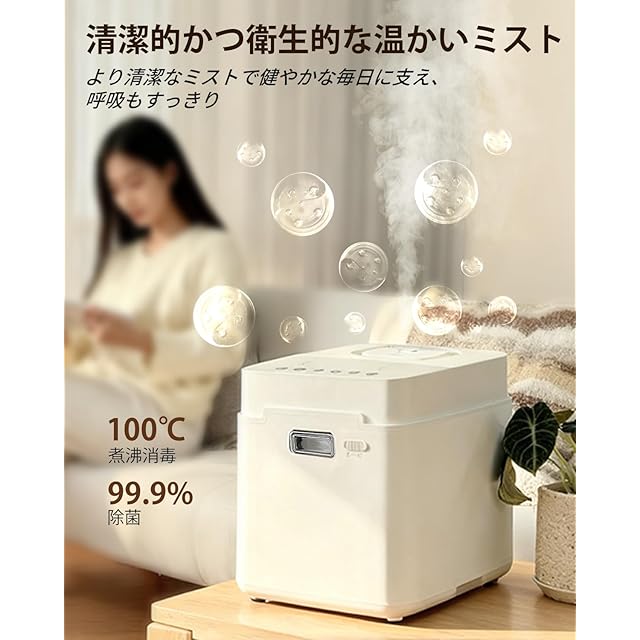 【清潔で健康的な暖かい霧】クリーンな蒸気でお宅の空気品質を改善しましょう!従来の超音波加湿器と比べ、この革新的な加熱式加湿器は水を 100 度まで沸騰させ、清潔な温かいミストを放出します。寝室、育児室、子供部屋、リビング、オフィスでの使用に非常に適しています。乾燥、アレルギー、鼻づまりを和らげるのに役立ち、より衛生で健康的な快適なミストをお楽しみいただけます。特に乾燥しがちな冬場やアレルギーの多発シーズンに最適です。