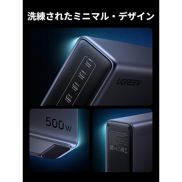 UGREEN 500W 充電器 type-c 卓上 急速【単ポート最大240W 高出力】GaN PD3.1 240W 6ポート:5×USB-C 1×USB-A 6デバイス同時急速充電 スマホ/PC/パソコン/ipad/macbookに対応 2mの電源ケーブル付き PSE技術基準適合 X759 iphone17シリーズ