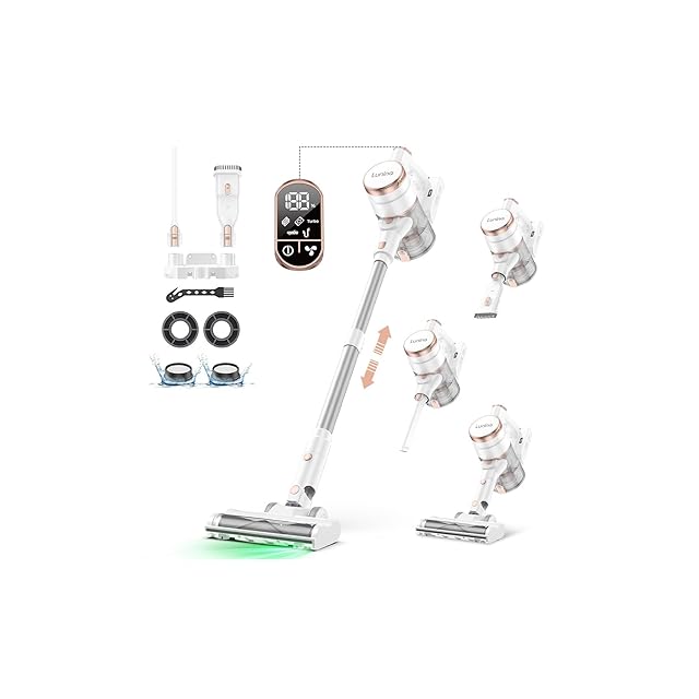 掃除機 コードレス【2025業界最新ブラシレスモーター&LED液晶ディスプレイ&&70Kpa強力吸引&65分連続稼働&自立式】Lunino コードレス掃除機 サイクロン式 550W 3段吸引力スティック/ハンディ 2WAY 軽量低騒音伸縮パイプ HEPA多重濾過着脱式バッテリー左右180°上下90°カーペット/ソファー/カーテン/本棚/車 V字型と自走式ローラブラシ付3年