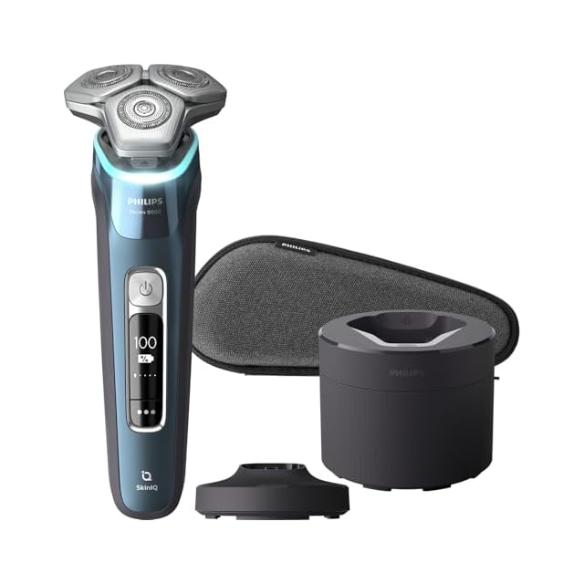 フィリップス 電動シェーバー 9000シリーズ 洗浄機付きモデル 電動 髭剃り メンズ (72枚刃・回転式/SkinIQテクノロジー お風呂剃り & 丸洗い可) S9982/54 アイスブルー