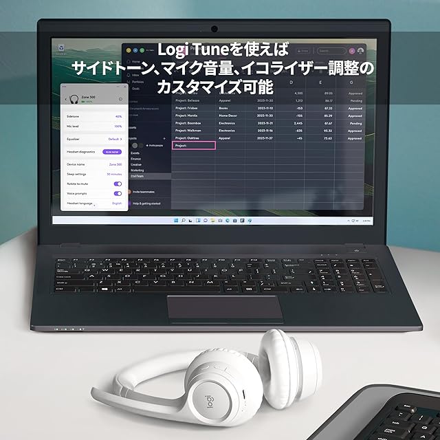 無料アプリケーションLogi Tuneを使えばサイドトーン、マイク音量、イコライザー調整のカスタマイズが可能