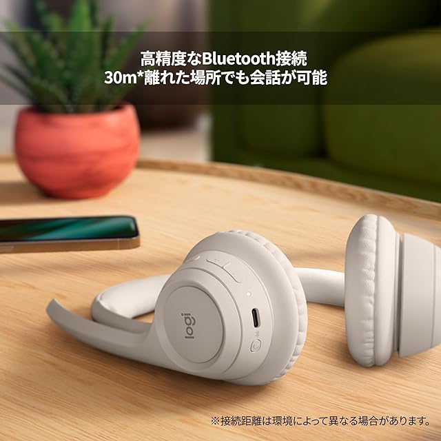 ロジクール ワイヤレスヘッドセット ZONE 300 Zone300OW Bluetooth 軽量 122g マルチポイント接続対応 2台同時接続 デュアルビームフォーミングマイク搭載 ノイズキャンセリング マイク付き USB TYPE-C 充電式 ワイヤレス ヘッドセット ヘッドホン ヘッドフォン Zone300 オフホワイト 国内正規品